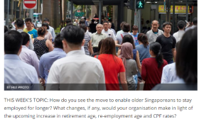 Our President is quoted in a response to The Business Times' "Views from the Top" weekly segment. The question posed was "How do you see the move to enable older Singaporeans to stay employed for longer? What changes, if any, would your organisation make in light of the upcoming increase in retirement age, re-employment age and CPF rates?"
