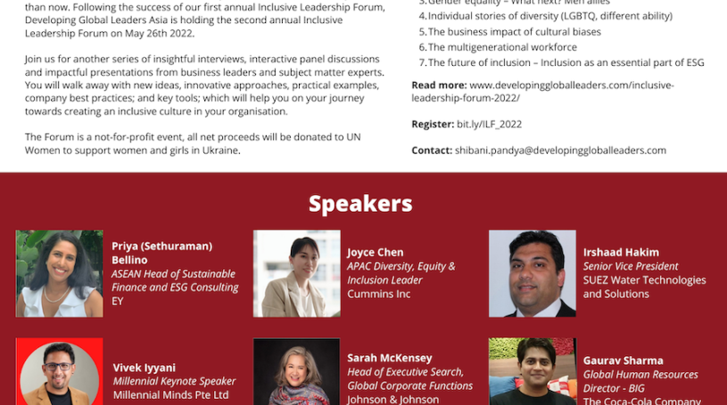 Developing Global Leaders Asia's second virtual global Inclusive Leadership Forum will be held on May 26, 2022.