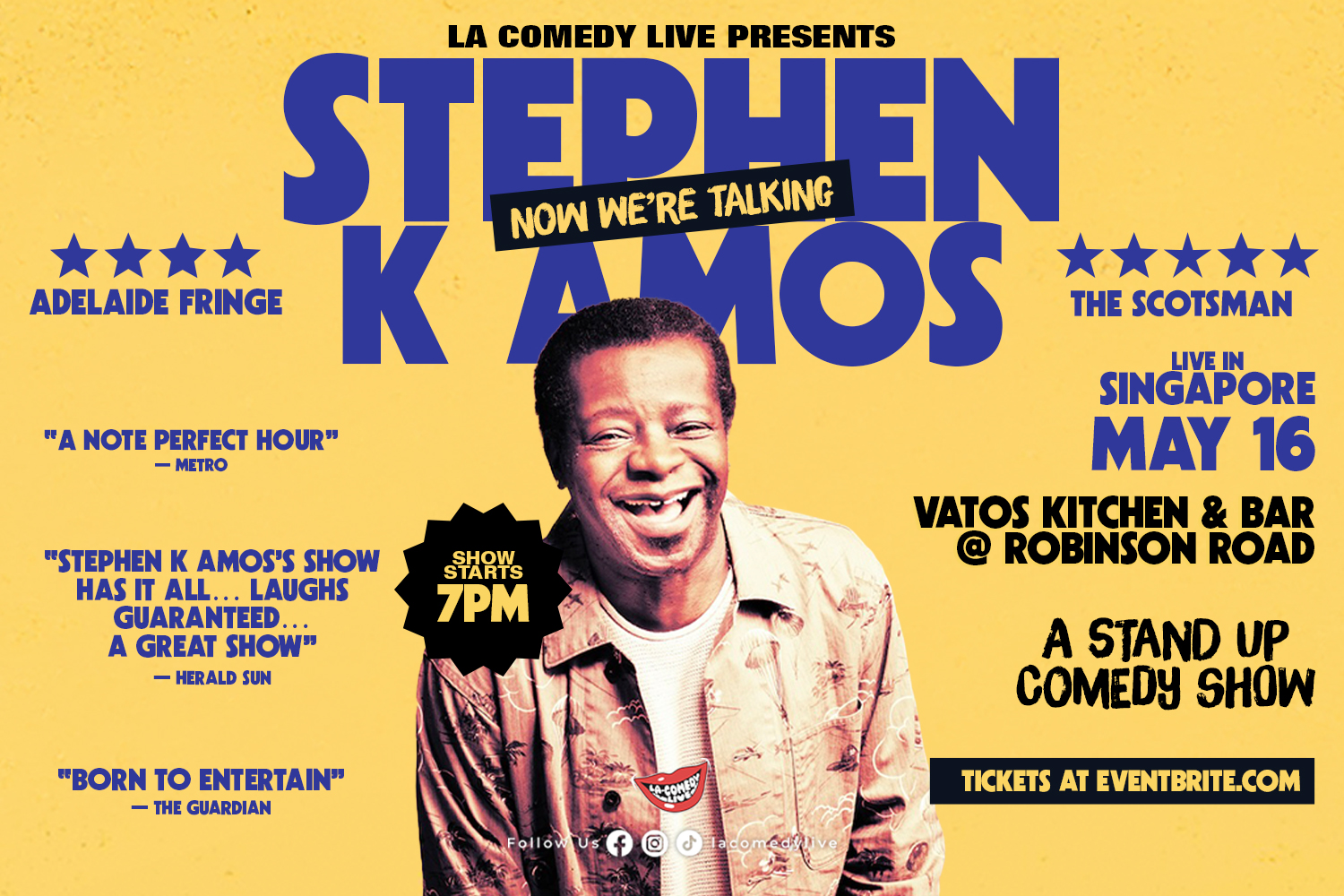 Renowned British Comedian Stephen K Amos brings stand-up show to Singapore on 16 May at Vatos Kitchen & Bar!