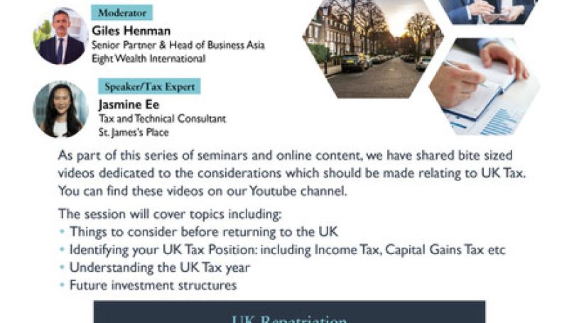 As part of this series of seminars and online content, we deep dive into the considerations which should be made relating to UK Tax, covering topics such as Inheritance tax, Property and Repatriation.