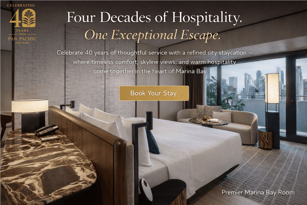 In celebration of our 40th anniversary at Pan Pacific Singapore we invite you to rediscover the city from a new perspective — with preferential weekend rates thoughtfully curated for Singapore Residents.