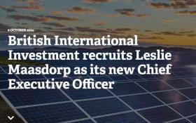 The Board of British International Investment is pleased to announce that it has selected Leslie Maasdorp to be the new Chief Executive of the UK’s development finance institution.