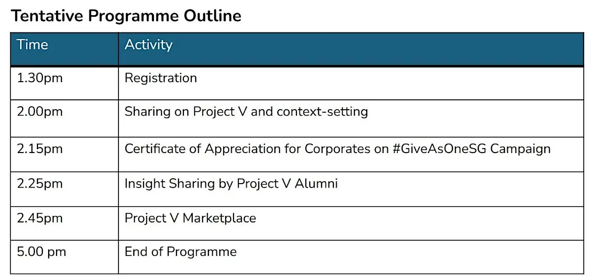 Project V, is a national initiative co-led by the National Council of Social Service (NCSS) and the National Volunteer & Philanthropy Centre (NVPC). The initiative seeks to strengthen sustained corporate volunteerism in Singapore by fostering regular, long-term partnerships between corporates and community partners, with the aim of delivering meaningful and lasting social impact.