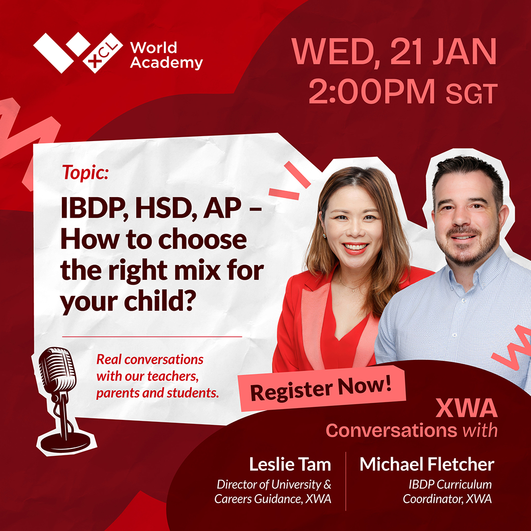 Choosing a high school pathway is a key decision that can shape your child’s university options and long-term opportunities. In this upcoming webinar, academic and university guidance experts from XCL World Academy will unpack the differences between the IB Diploma Programme (IBDP), Advanced Placement (AP) courses, and the High School Diploma (HSD) Pathway.